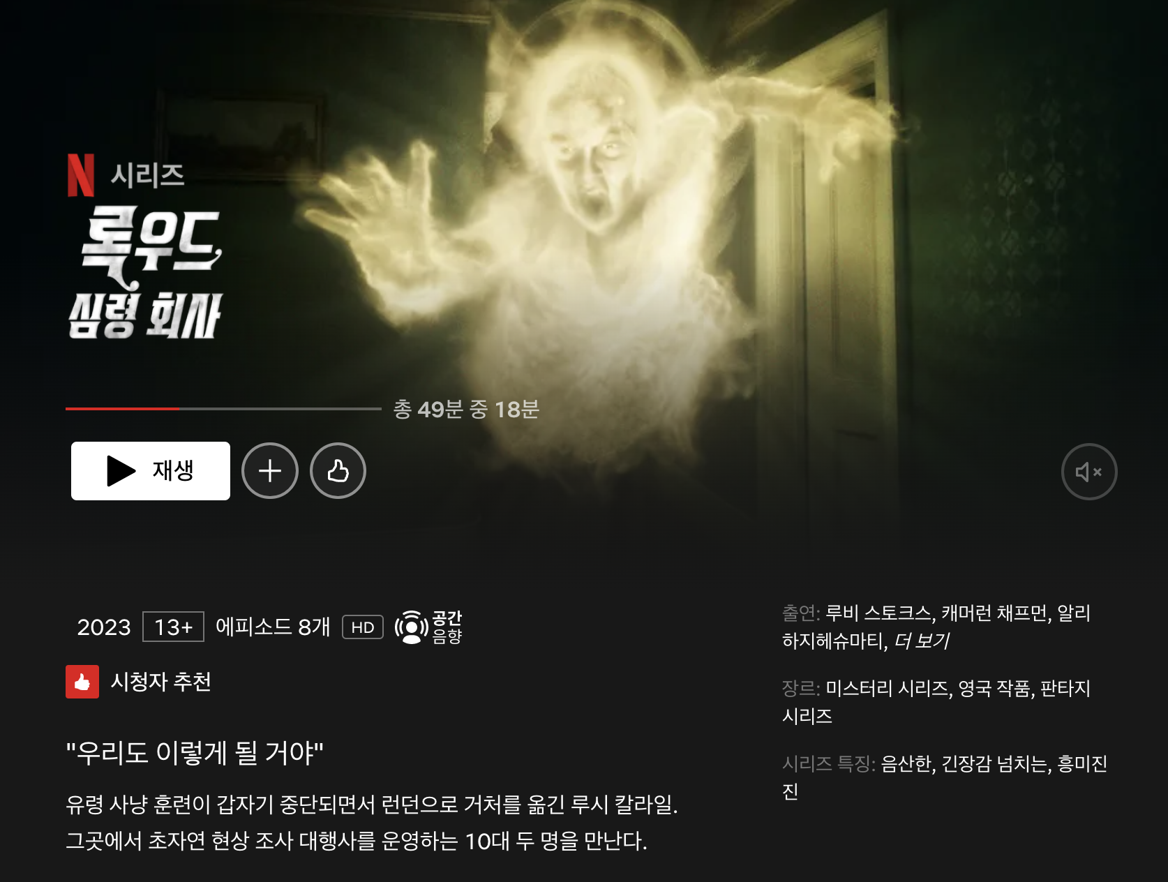 판타지, 액션, 어드벤처, 드라마의 장르로 소개된 '록우드 심령회사'는 2023년 1월 27일 넷플릭스에서 공개되었습니다. 에피소드는 총 8개 롤 13세 이상 관람가이지만, 내용의 무게와 분위기로 봤을 때는 15세 관람가가 맞을 것 같습니다.