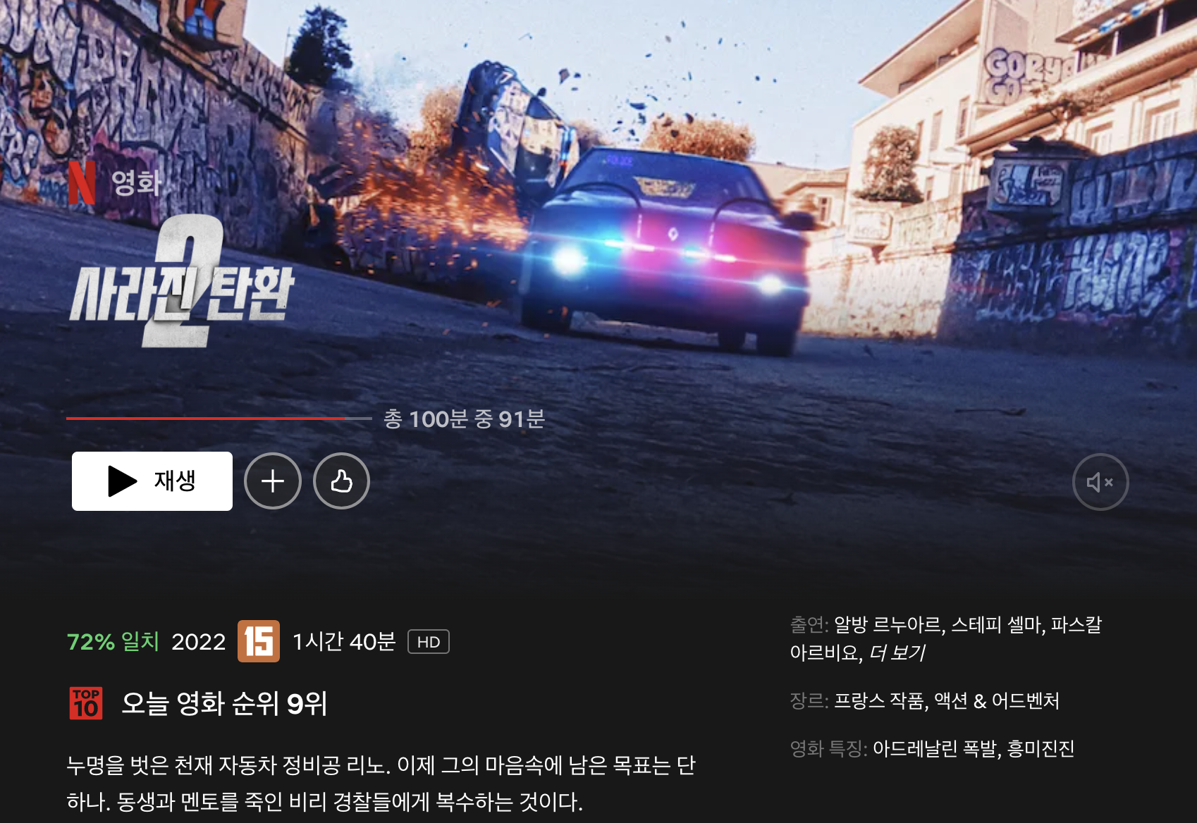 2022년 11월 10일에 출시된 영화로, 액션과 범죄, 스릴러 장르의 영화입니다. 감독은 이전 작품인 <사라진 탄환> 과 같은 '기용 피에르' 입니다. 출연진 또한 시즌 1과 같은 인물들로 주인공 '리노'의 역인 '알반 레누아'로 이번에는 각본까지 참여했습니다. 그 외의 인물로 '스테피 셀마'와 '세바스티앙 라란느' 배우 등이 출연했습니다.